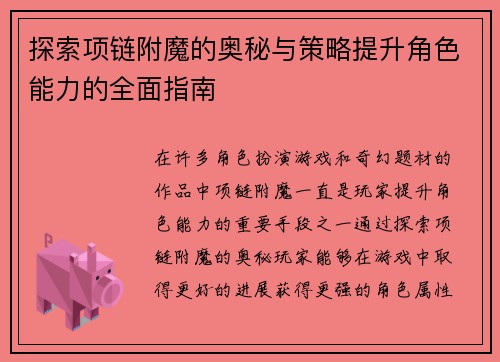 探索项链附魔的奥秘与策略提升角色能力的全面指南